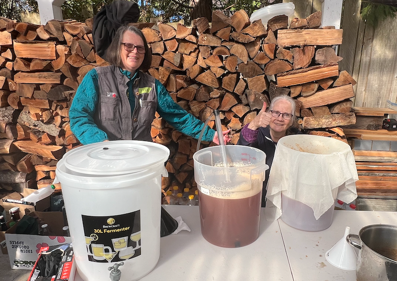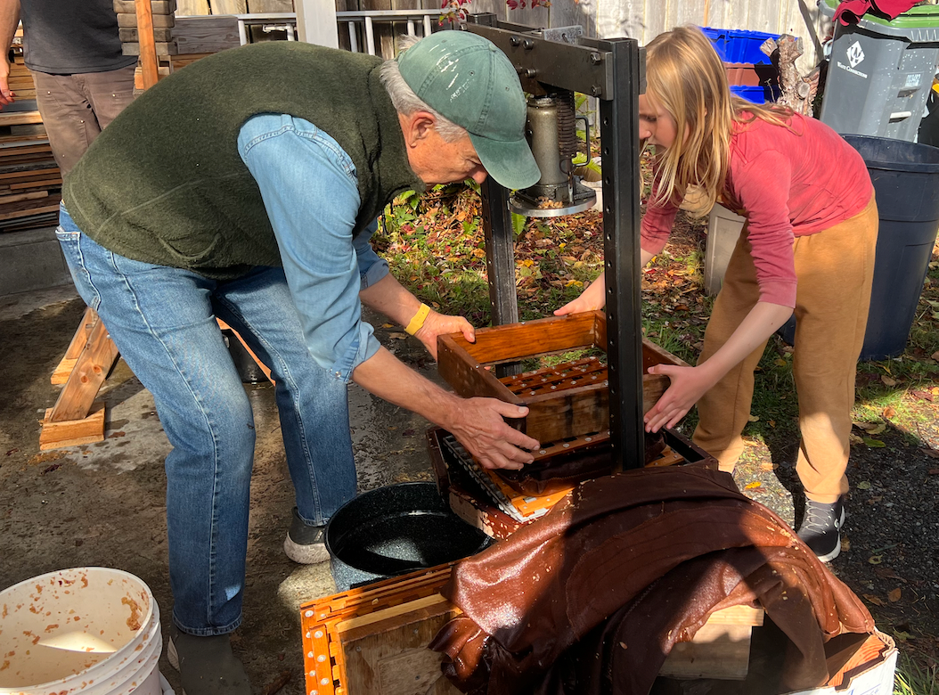 The Big Squeeze is an interesting event in that new and old "cider makers" arrive, find something they want to do, and get to work. If they get tired, they move to another task or grab a bite off the snack table along with a glass of fresh-tapped cider. Many showed up this year and moved from task to task as room allowed at the chopping tables.