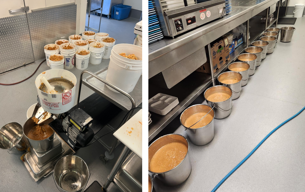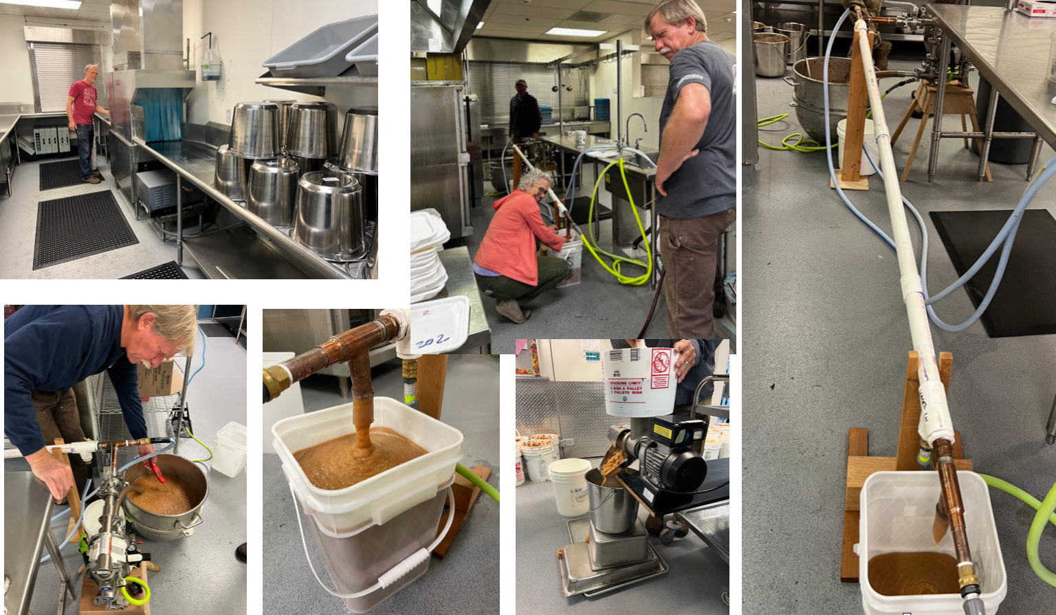 This year's marathon was 10 hours long at the Blue Heron Middle School kitchen. Lots of cross-trained hands made for a relaxing day of washing, chipping, cooking, saucing, cooling, and freezing... This year's batch was just the right amount to texture to taste. The end result will be served at Port Townsend, Chimacum, and Quilcene Schools as toppings for pancakes, muffin ingredients, or just straight up fresh.