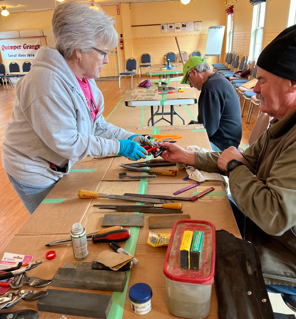 Thank you Mark Paxton for supplying items, technique, and knowledge about the how-tos and Barbara Tusting for setting things in motion. We are all now trained to become helpers at the next Public Tool Maintenance Clinic. (just kidding, sort of...)