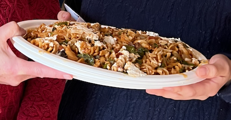 Mom and daughter Jimenez summed up summer in a bowl with this pasta dish with veggies and herbs from Alice's garden and Belinda's personal garden herbs. This bake is both gluten free and vegetarian and easily becomes a base recipe from which you can be creative with different cheeses, pastas, and veggies.