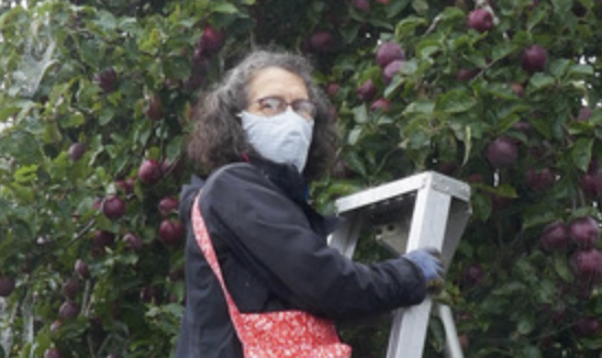 Landing Picture: Cheryl Lowe picking apples