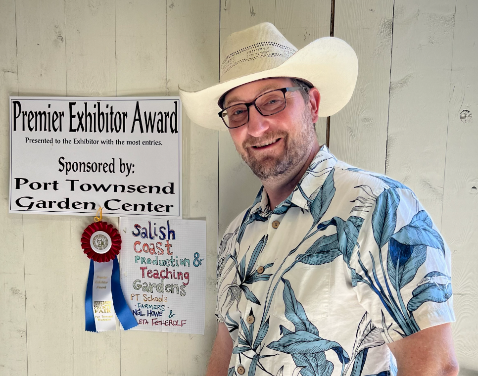 There is something endearing and validating about winning a blue ribbon at the County Fair. What if you won 31 blue ribbons, 7 red ribbons,and the Exhibitor Award!?! Kudos isn't enough, but... KUDOS to farmer Neil Howe, teacher Leta Fetherolf, and the FBG volunteers (Milly, Keith, Erik, Jill, and Mary) for bringing the Salish Coast garden along so quickly.